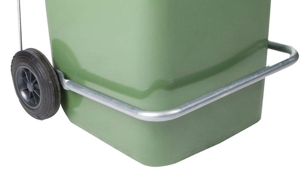 - Διαθέτει ρόδες, καπάκι με ασφαλές κλιπ, υποδοχή για λουκέτο και ενσωματωμένη μεζούρα για εύκολο χειρισμό.