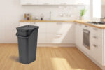• Με μετακινούμενο χερούλι μεταφοράς που λειτουργεί ως σύστημα ασφαλούς κλεισίματος. Όταν αναδιπλώνεται προς τα εμπρός, κλειδώνει πλήρως το καπάκι του κάδου γεγονός που το καθιστά ιδανικό για χώρους με παιδιά ή κατοικίδια.